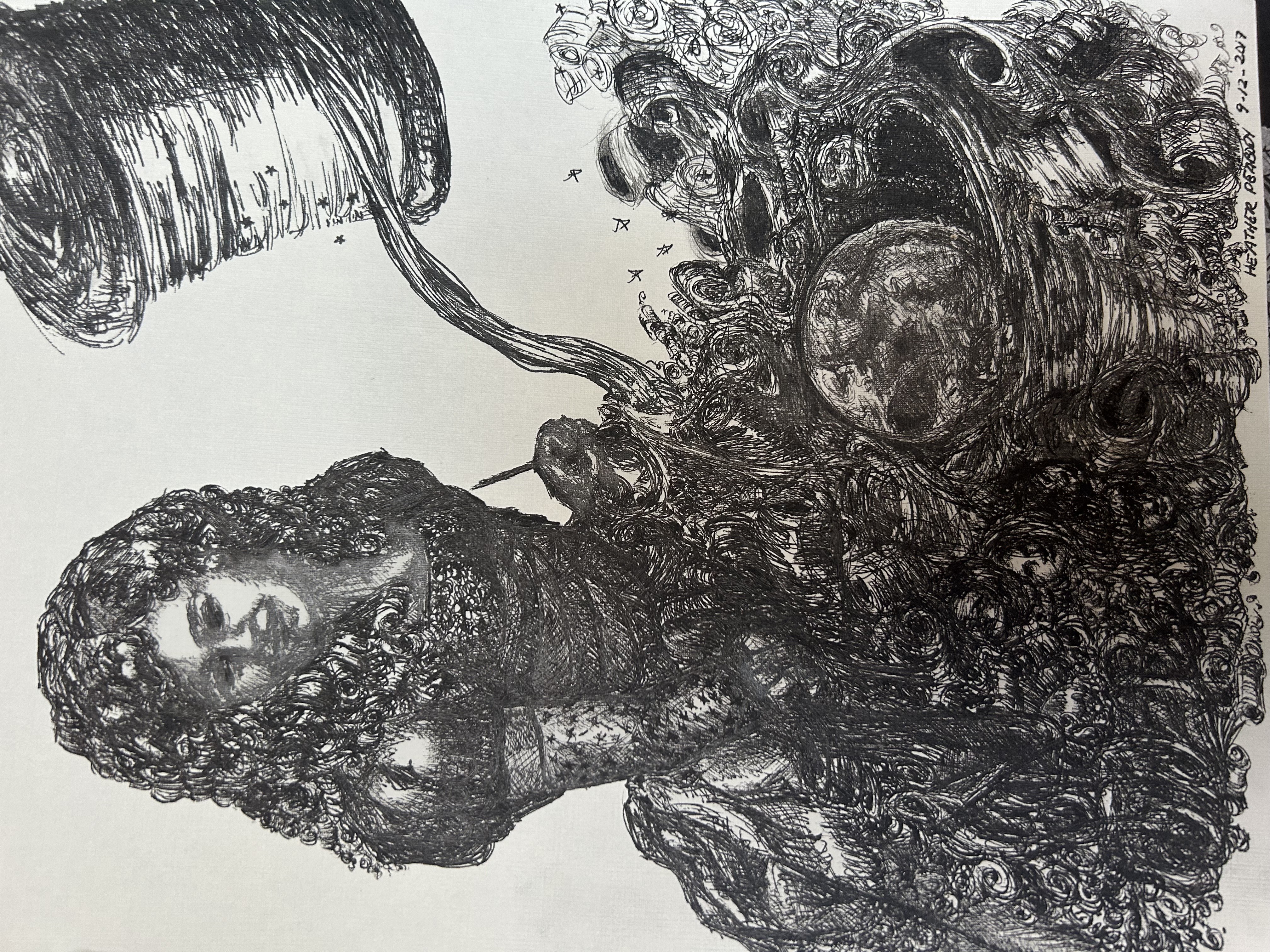 Heather Johnson is a local artist who works with multimedia. Her most recent works include Amigurumi dolls, paper clay bowls, and sigils- which are symbols and/or pictures made from sentences/concepts to symbolize intentions and manifestations. She loves to explore media and make/break rules in the design to convey what she has imagined. In the early days of AI drawing, she played with prompts to convey fever dreams.